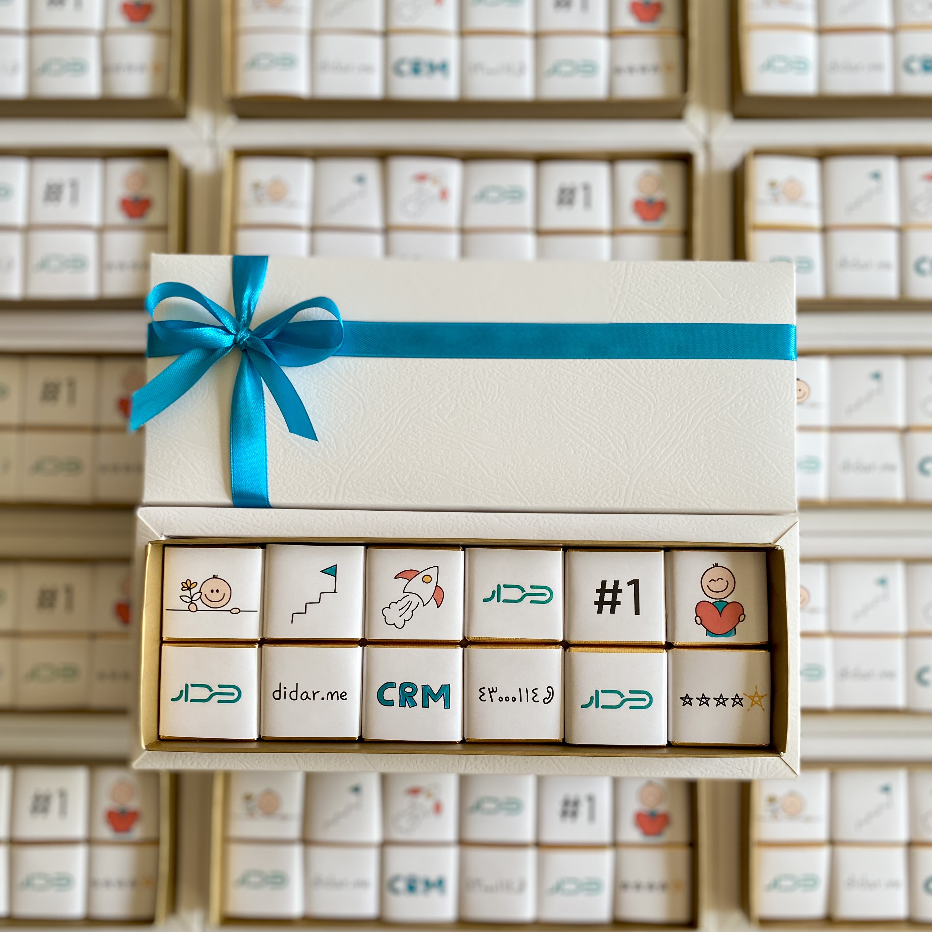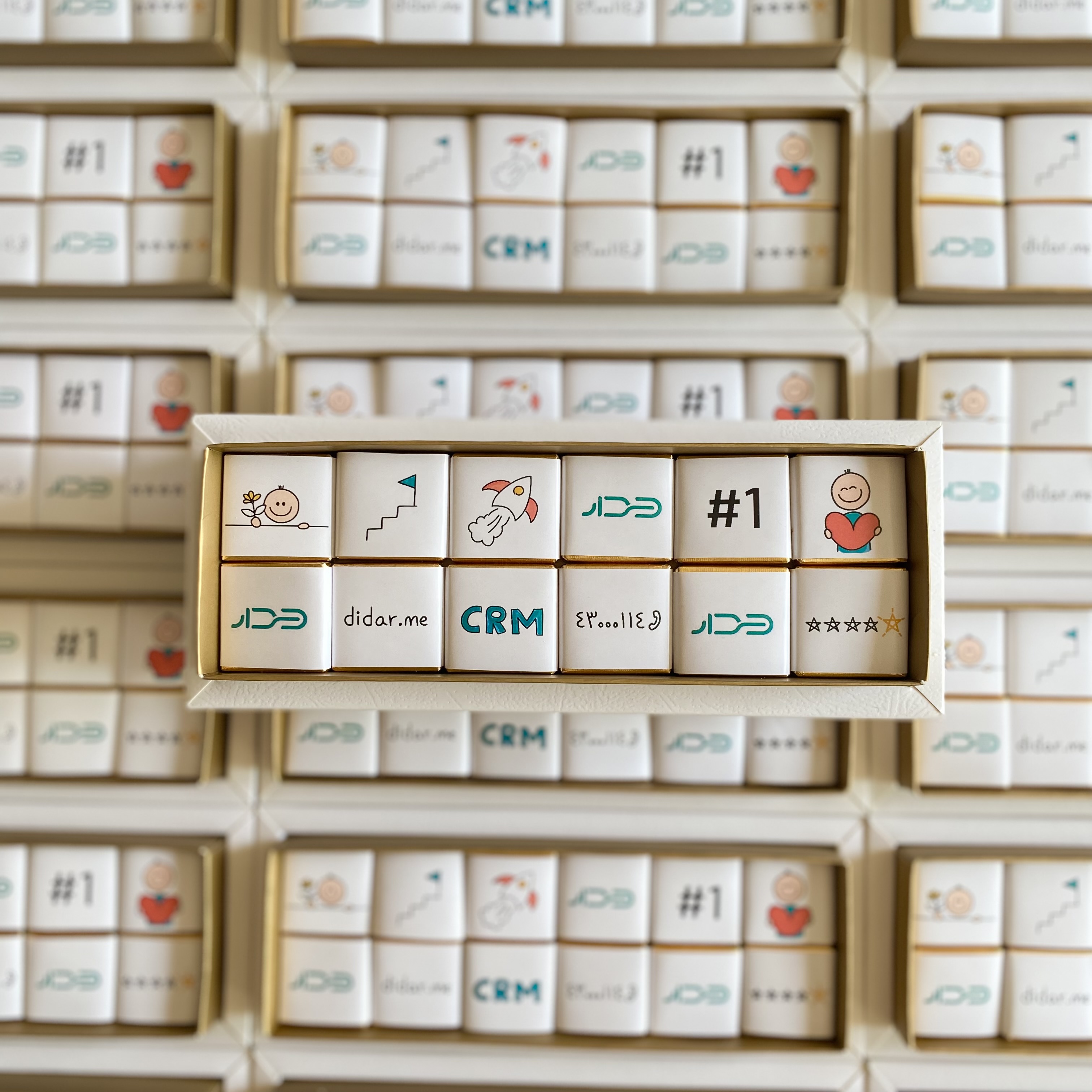 شکلاتهای این باکس با طراحی لوگو شرکت میباشد ؛ هدیهای شیرین و متفاوت برای مدیران و شرکت ها ✨ کافیه لوگوی شرکت مد نظرتو برام بفرستی🪄 قابل سفارش در تعداد ۱۲، ۲۵، ۵۰ و بیشتر🍫