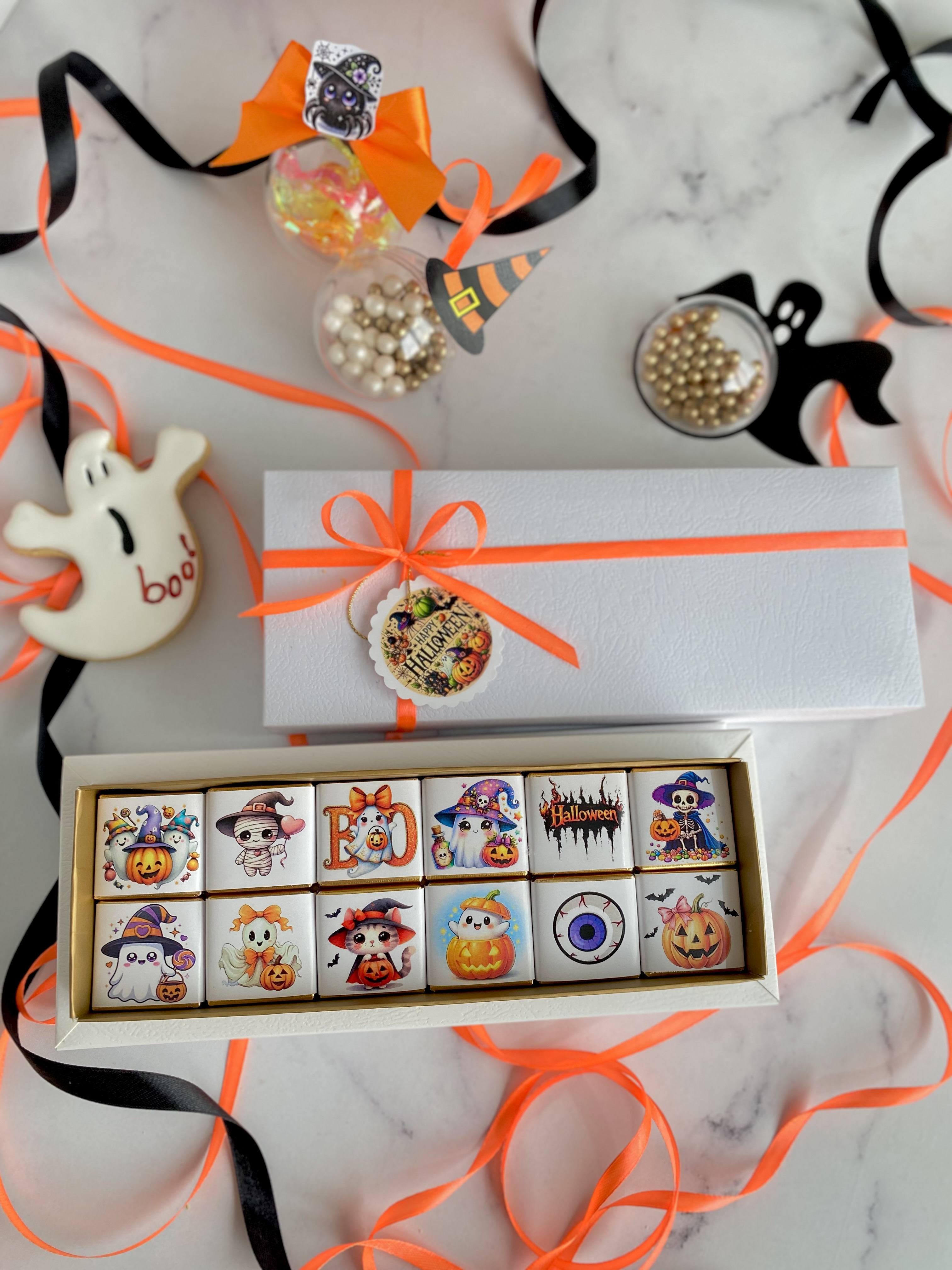 این شکلات خوشمزه با روکش چاپی هالووینی، ترکیبی از رنگ‌های خاص و طراحی کارتونی داره.المان‌هایی مثل اسکلت، کدو، و شبح کوچولو روی جلد چاپ شدن تا حس جشن هالووین رو کامل کنن.مناسب برای پک‌های هدیه، مدرسه، مهمونی یا حتی پذیرایی خاص.🍬🕷️🎃🖤
