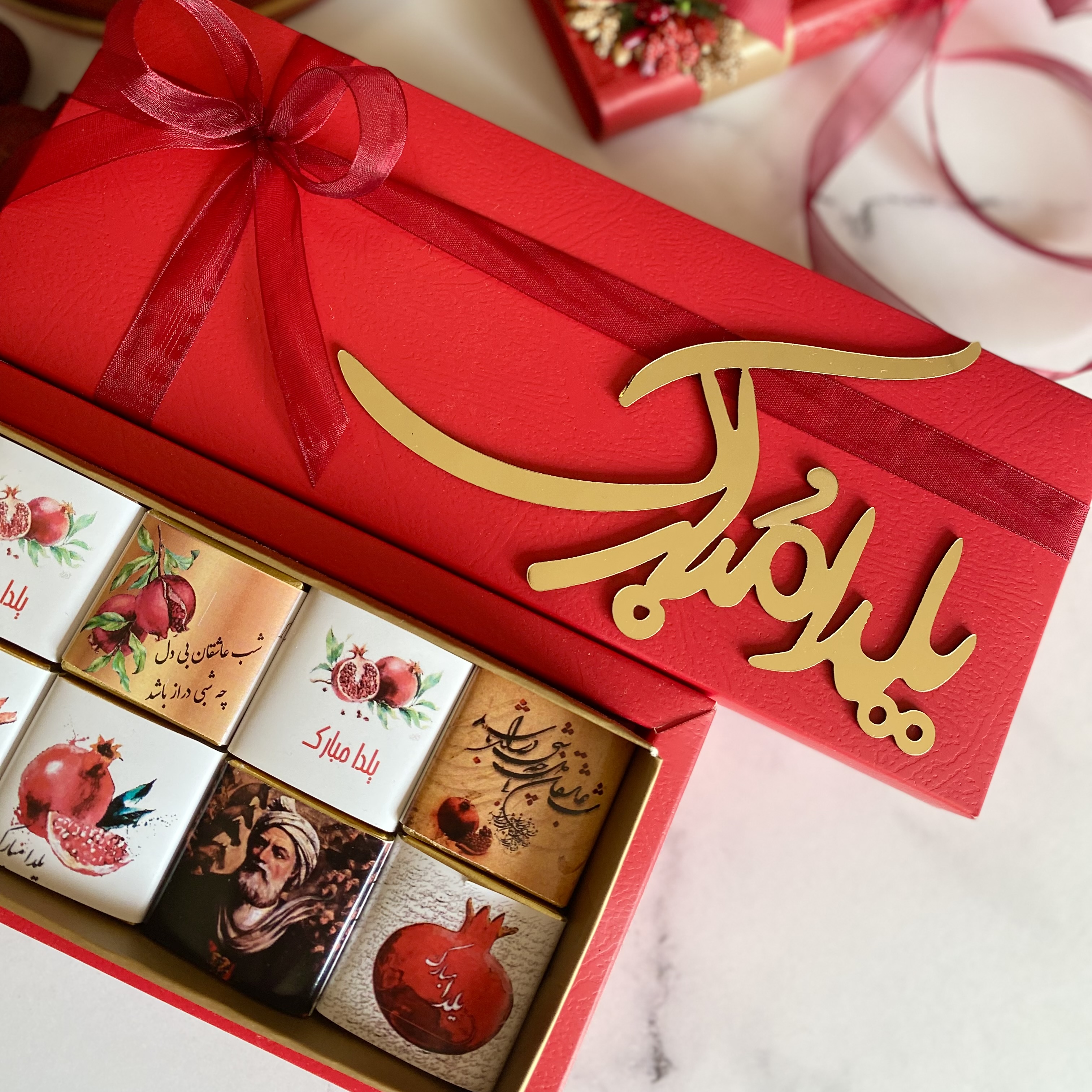 باکس شکلات 12تایی با تگ یلدا مبارک