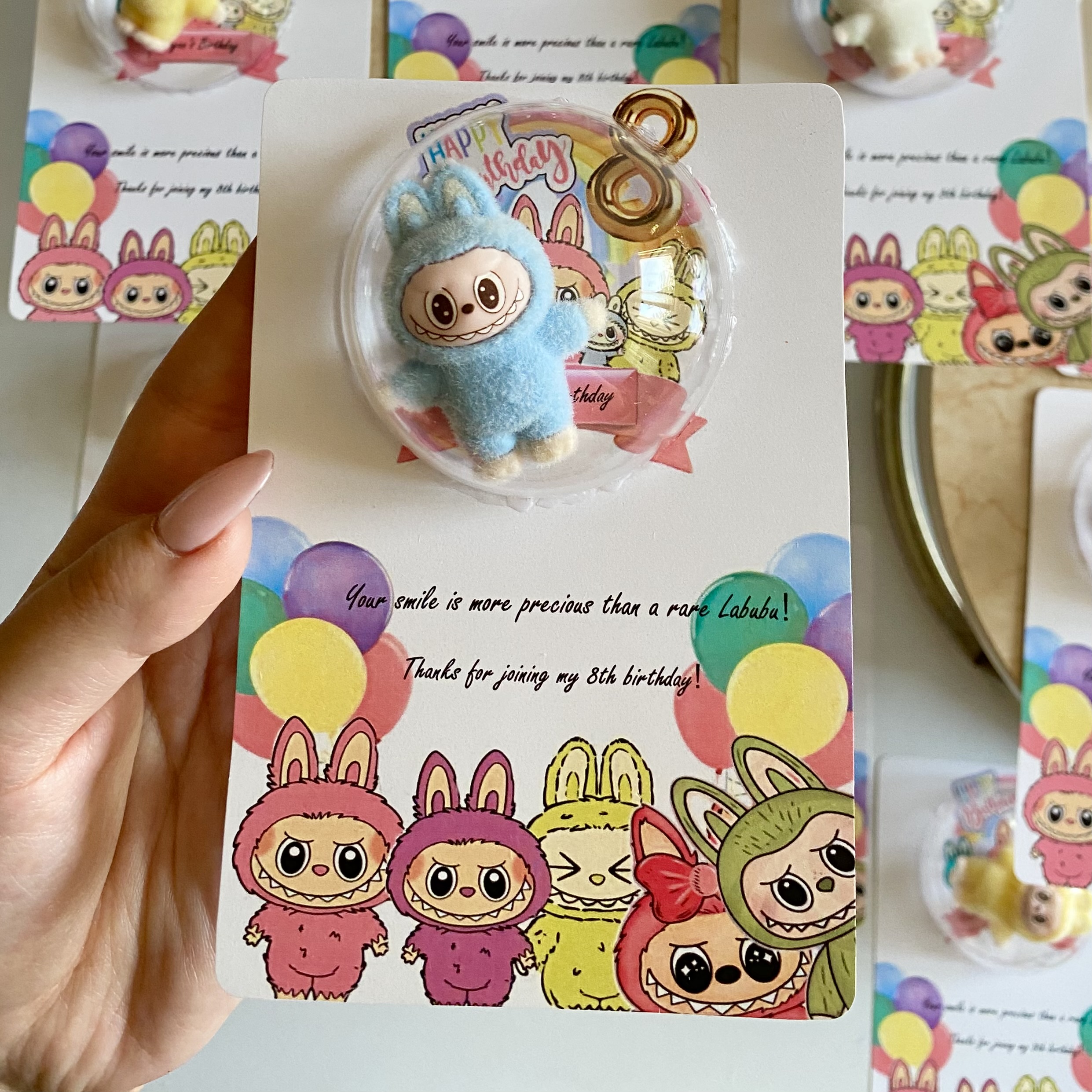 این ولکام کارت جذاب با تم محبوب لبوبو طراحی شده که داخل حباب روی کارت، یک عروسک لبوبو رنگی و رندوم قرار میگیره 🎁💖✨ شما میتونید رنگ کارت، تم کلی و حتی متن دلخواهتون رو انتخاب کنین تا کاملاً متناسب با مراسمتون طراحی بشه.🎀 مناسب برای:جشن تولد، ولکام نوزاد، سیسمونی و هر مراسمی که میخواین مهمونهاتون با یه یادگاری شیرین و خاص سورپرایز بشن 💝