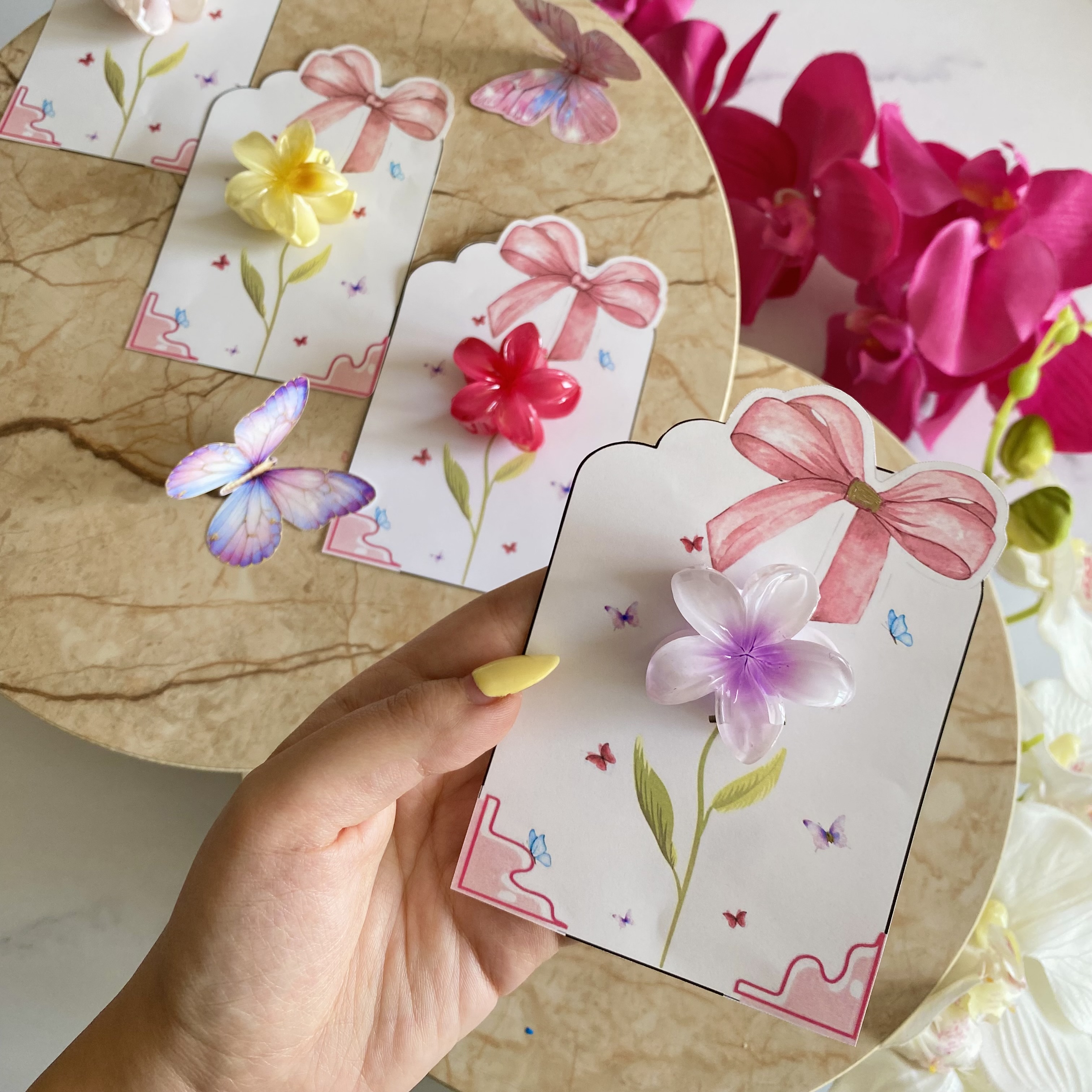 یه گل سر یخی و با رنگای زیبا که روی یه کارت خوشگل سوار شده و میتونید هر متن و اسم و .. ای که بخواید به ما اطلاع بدید تا روی کارت براتون طراحی و چاپش کنیم✨